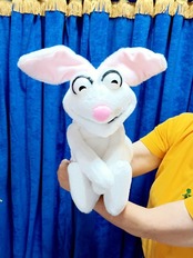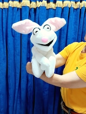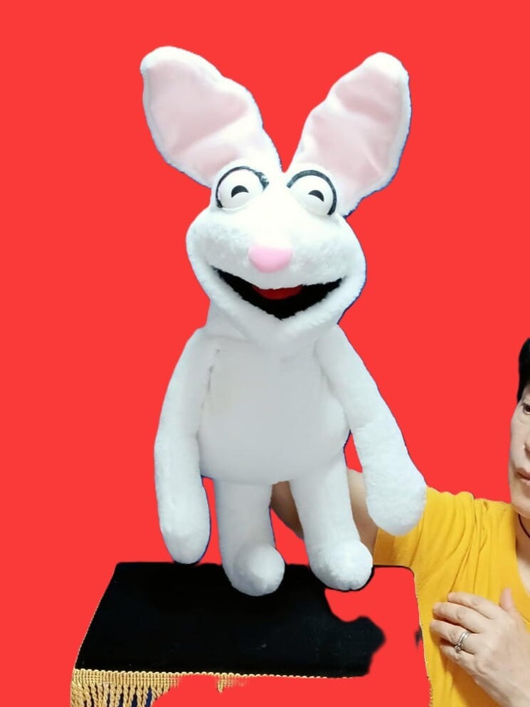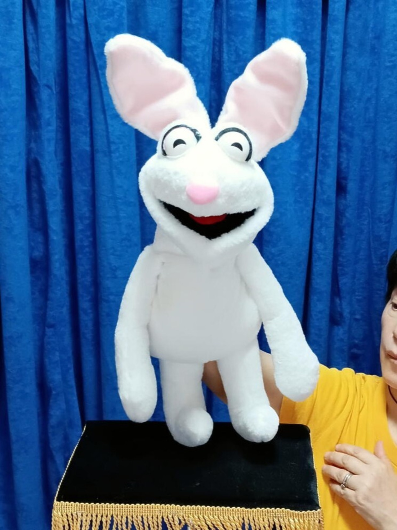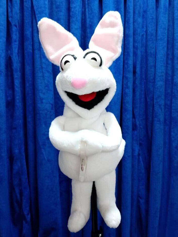 子どもから大人までに好まれるソフトパペット「ラッキーラビット」大きさはかかとから耳の先まで約60センチ、重さは250グラムの超軽量です。幼い子どもたちも決して怖がらずに楽しんでくれます。(送料当店負担)