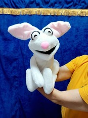 子どもから大人までに好まれるソフトパペット「ラッキーラビット」大きさはかかとから耳の先まで約60センチ、重さは250グラムの超軽量です。幼い子どもたちも決して怖がらずに楽しんでくれます。(送料当店負担)