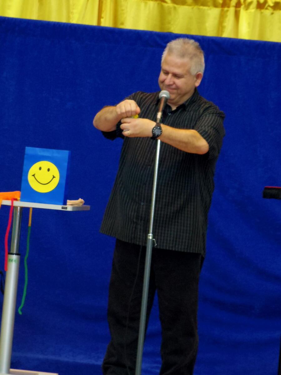 マジックと腹話術を組み合わせて子供たちを楽しませるテクニックも紹介しています。