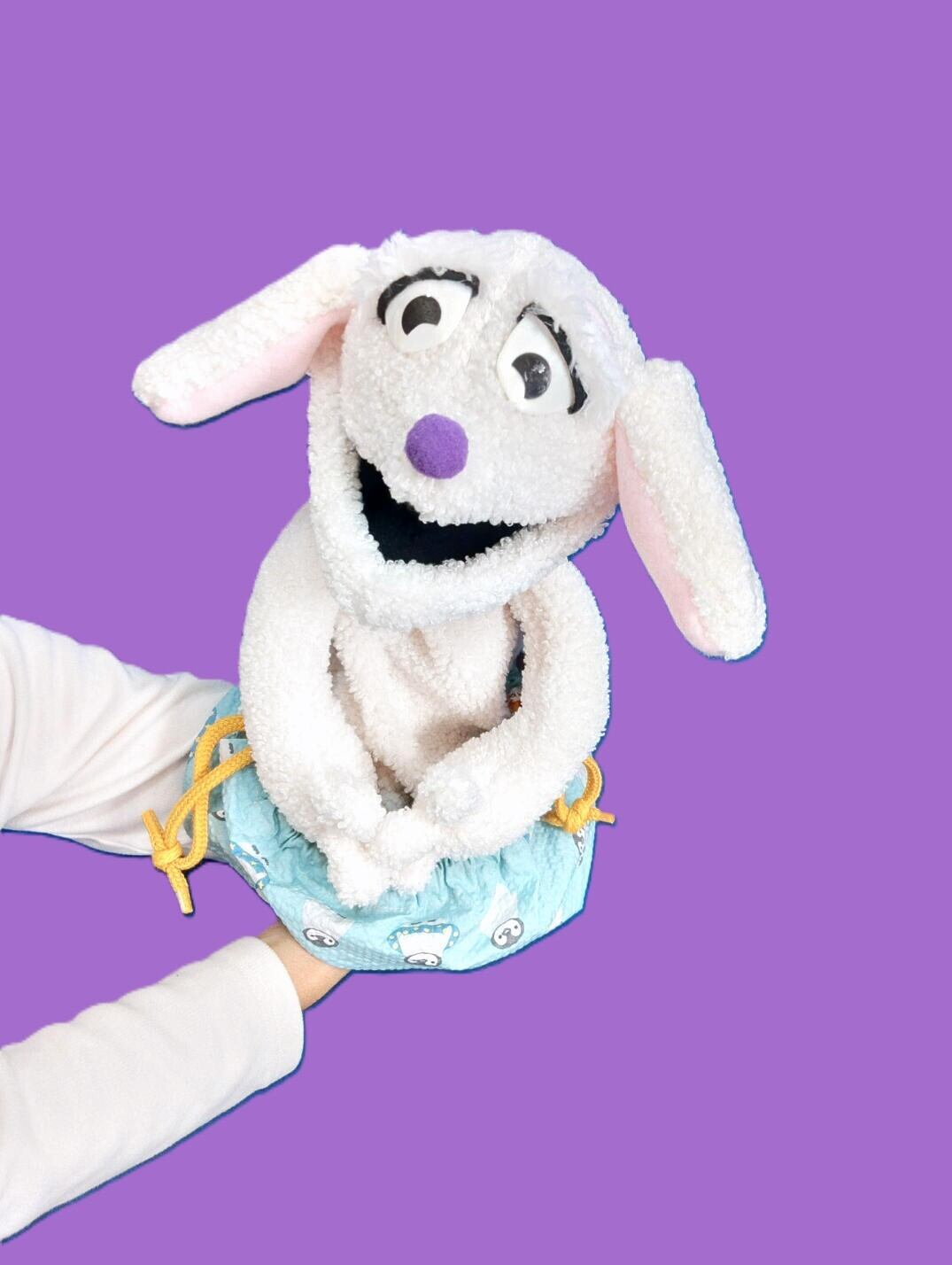 「ラッキードッグ mini大特価」は、かわいらしい犬のパッペットです。ハーフボディ白色の超軽量袋入りで、子供たちにとっても飼っているかのような感覚を楽しめます。